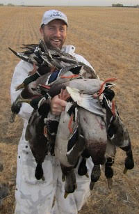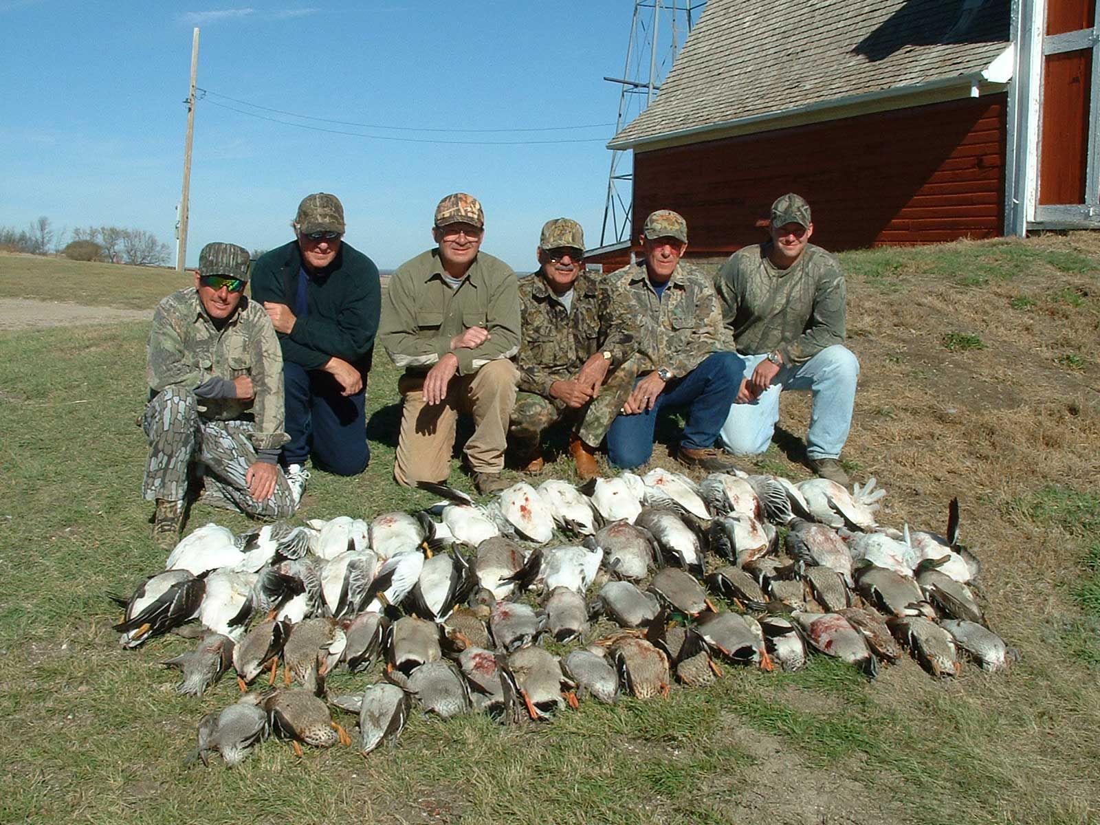 Duck hunting usually involves hunting small potholes, or an evening field shoot over decoys for big northern mallards and pintails. Goose hunting (Canadas, specks and snows) is done in harvested grain fields with layout blinds over full-body decoys. They also have fantastic sandhill crane hunting, along with some upland birds.